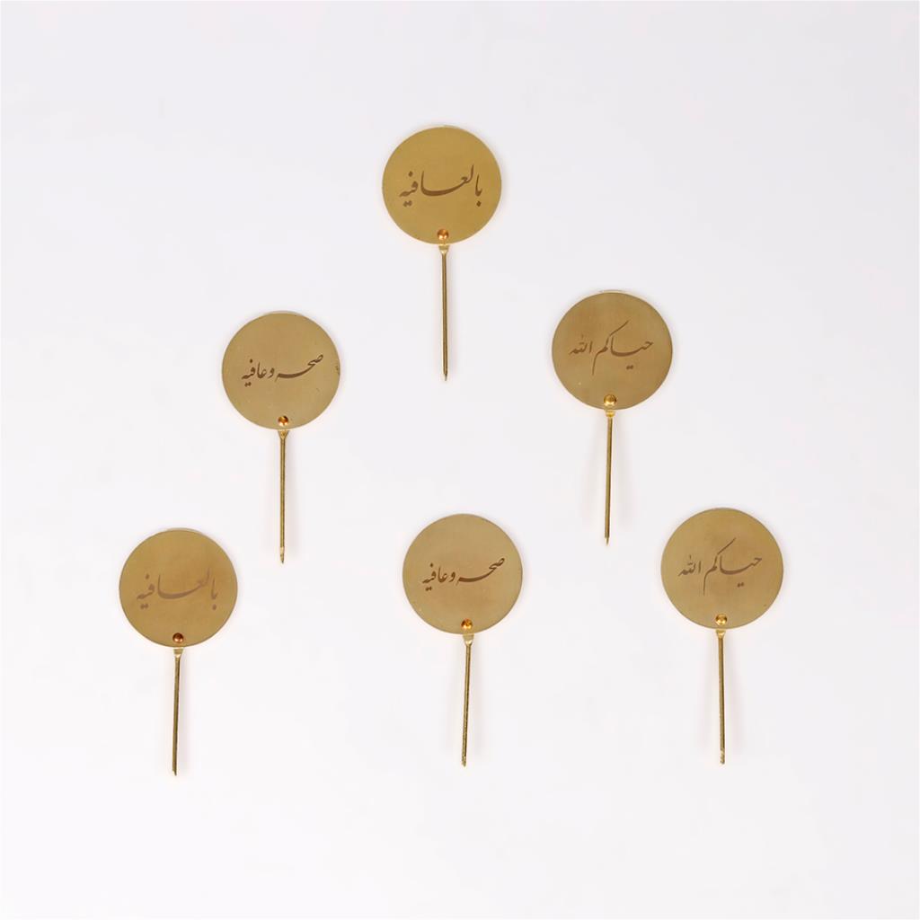 • تغريسات للأكل مناسبة للمناسبات والحفلات، منفذة بأعواد الخشب مع طباعة التصميم على ستيكر ورقي على الجهتين